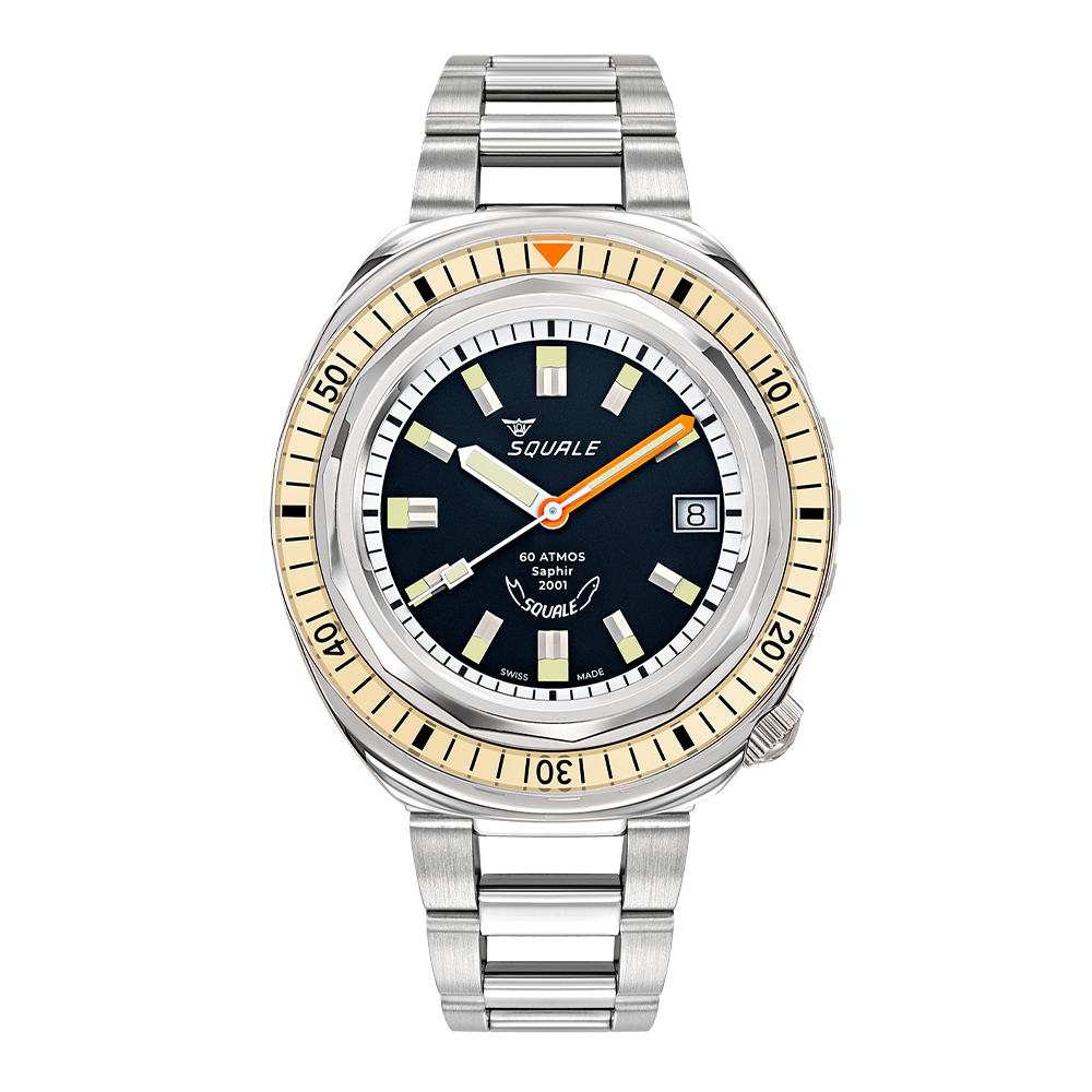 Squale bringt eine Ikone der 1960er und 1970er Jahre in seine kontinuierliche Kollektion zurück: die Referenz 2001. Ursprünglich entwickelt, um große Apnoetaucher bei ihren Tauchgängen ins "Grand Bleu" zu begleiten, wird sie heute von unerschrockenen Meeresforschern getragen.
